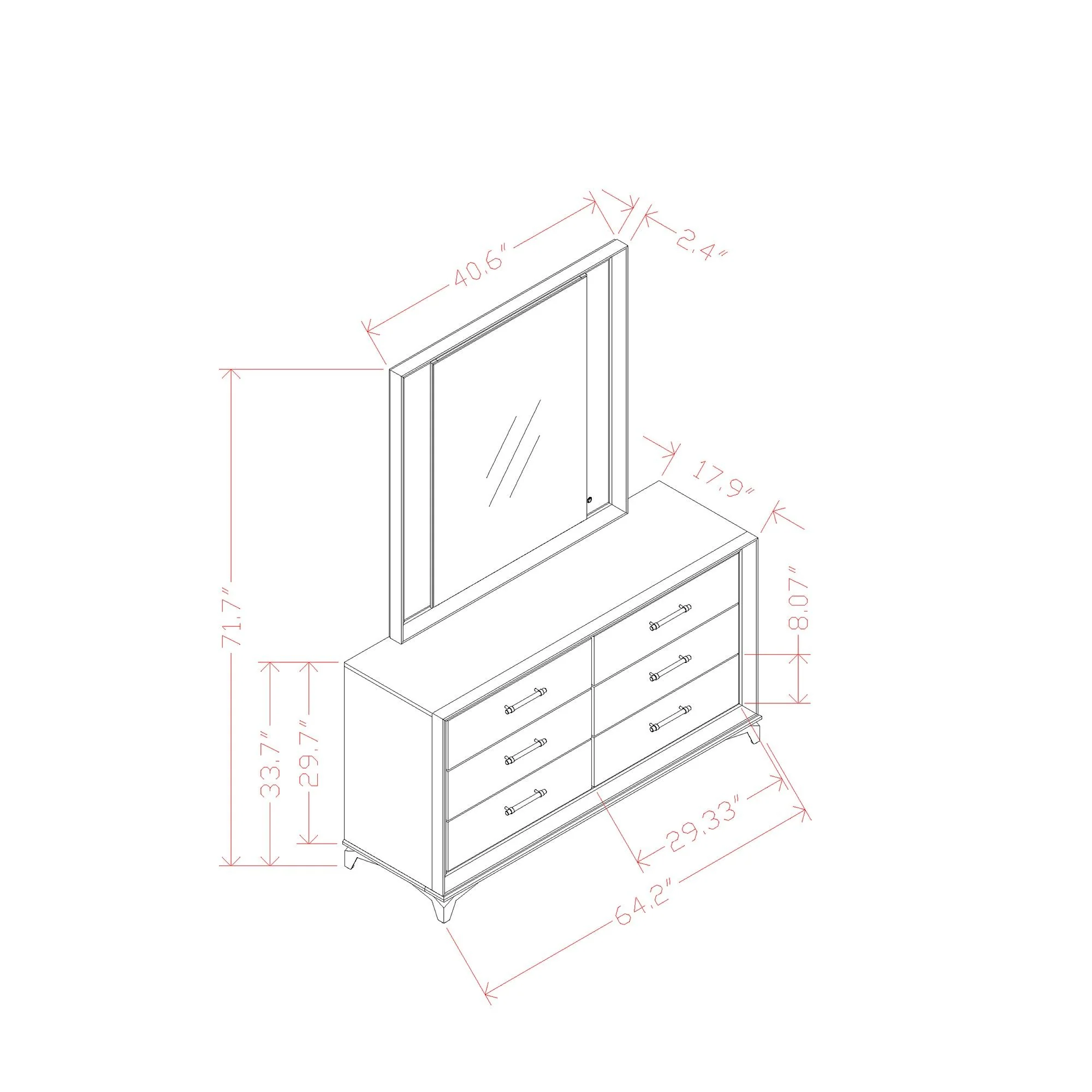 64.17"W x 17.91"D x 33.66"H - 169.76 lb